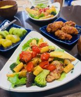 鶏肉・シイタケ・ブロッコリー・トマト・ヤングコーンの炒め物